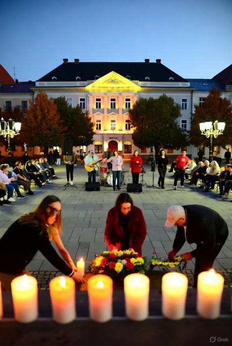 A főtéren és környékén gyertyagyújtás, koszorúzás és előadások zajlottak.